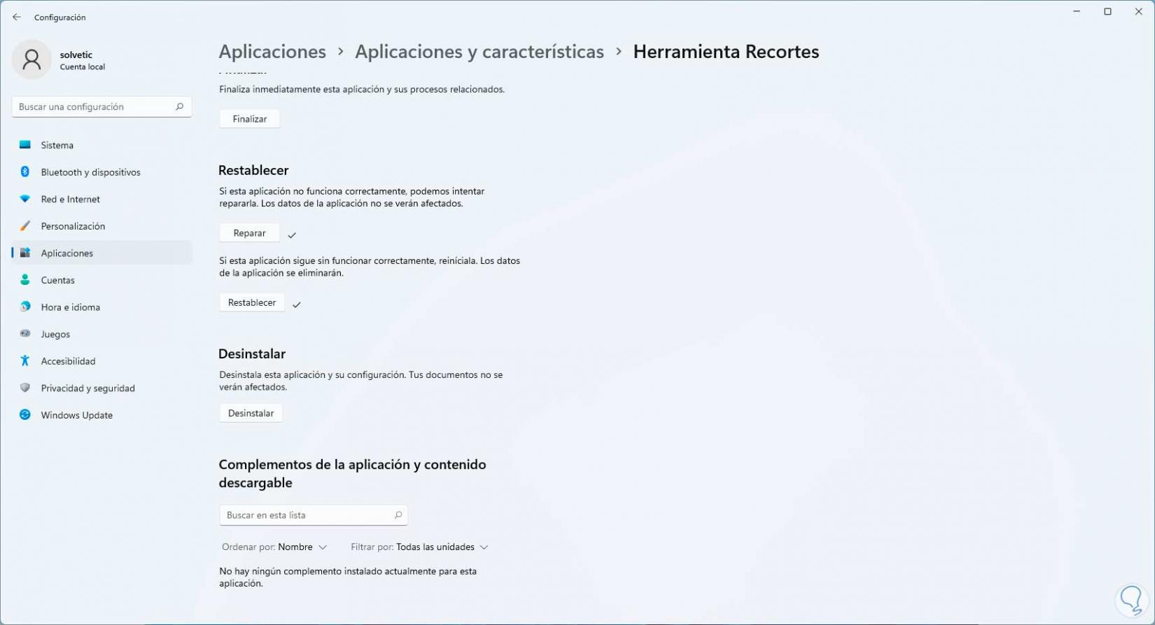 Corregir error de herramienta Recortes Windows 11