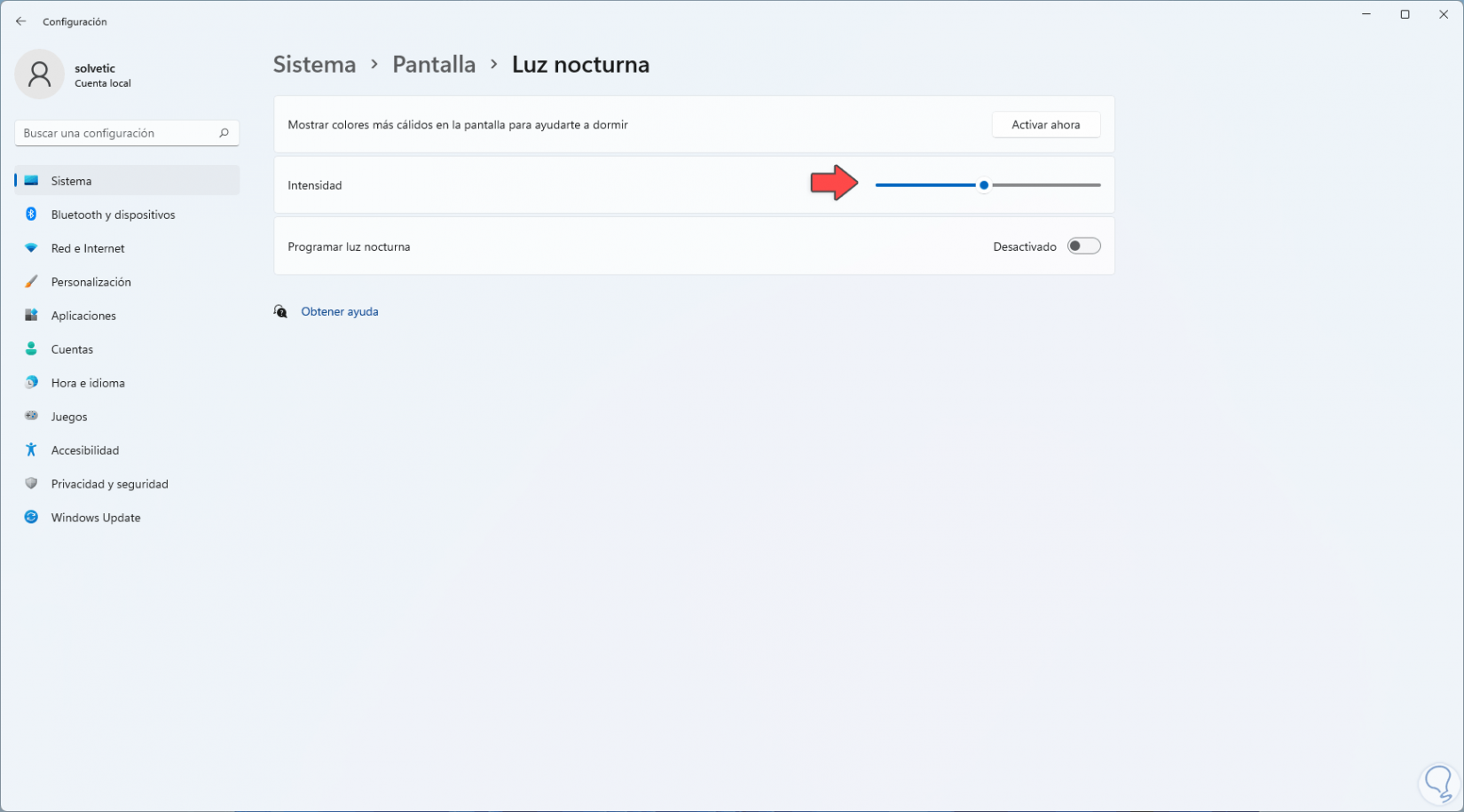Con estos pasos podemos activar, desactivar o bien programar la luz nocturna en Windows 11 teniendo presente que es una función que se ha añadido en el sistema para optimizar la salud visual del usuario ya que al estar tanto tiempo frente a un computador la salud visual puede verse afectada por muchas razones independiente del tipo de monitor que se esté usando.