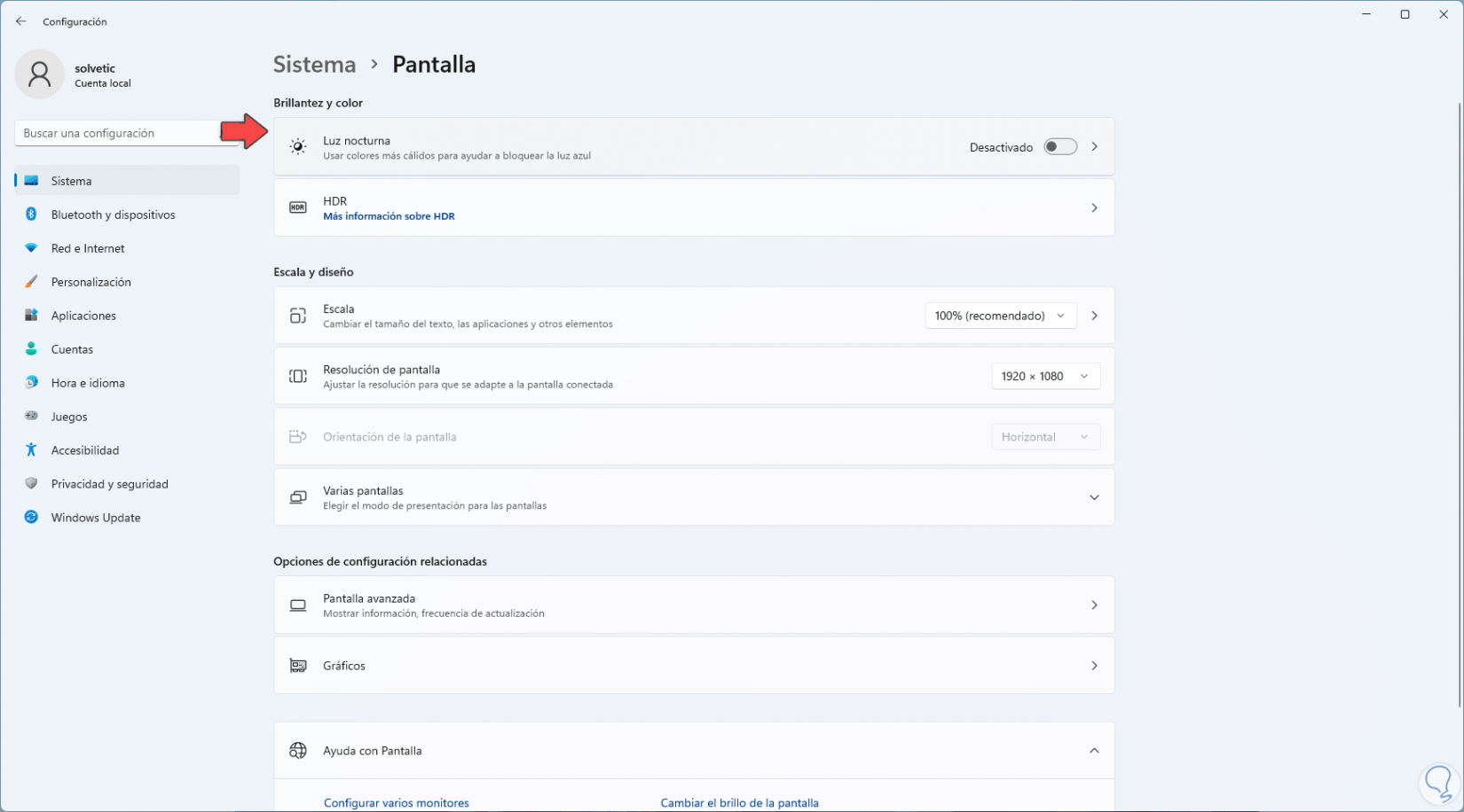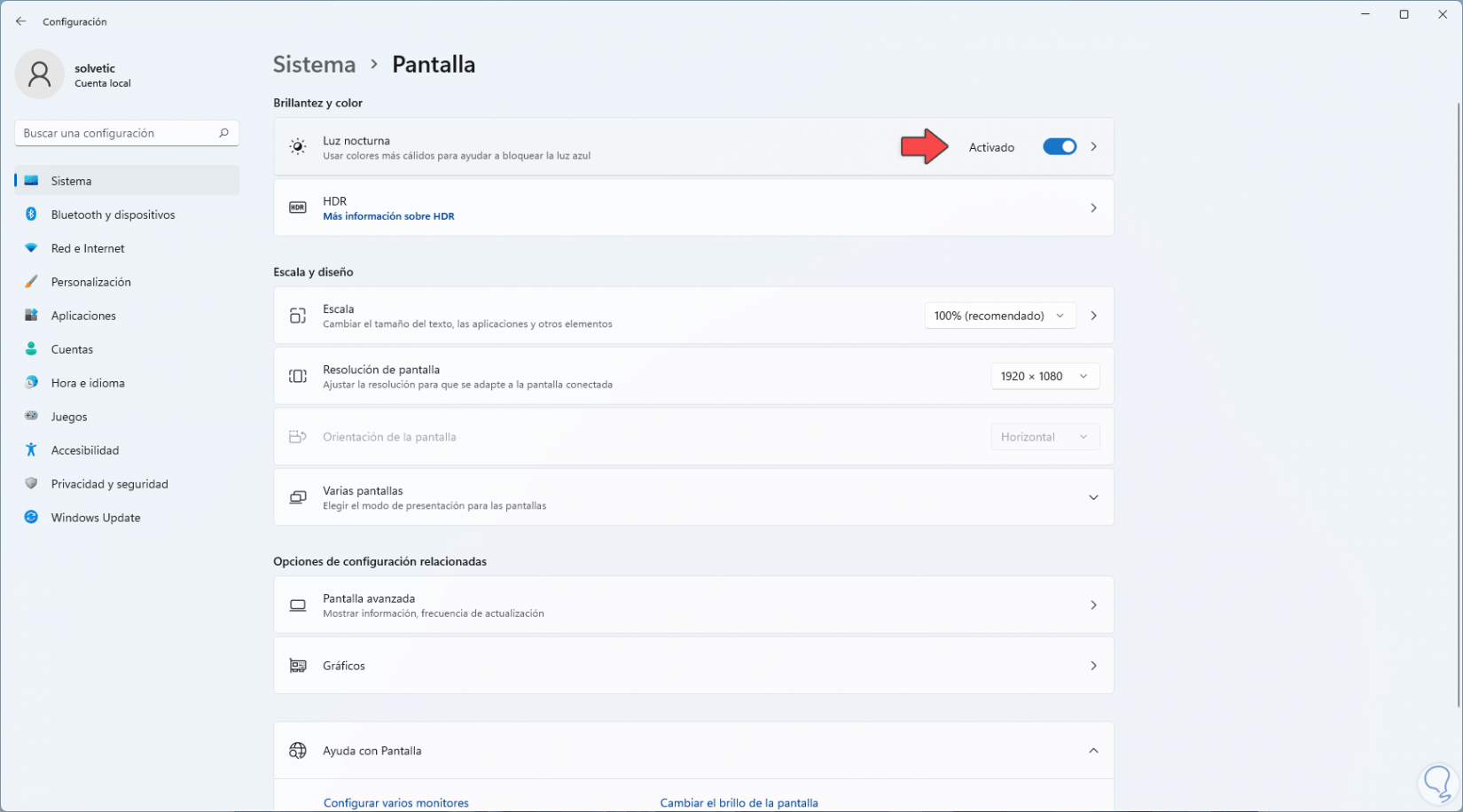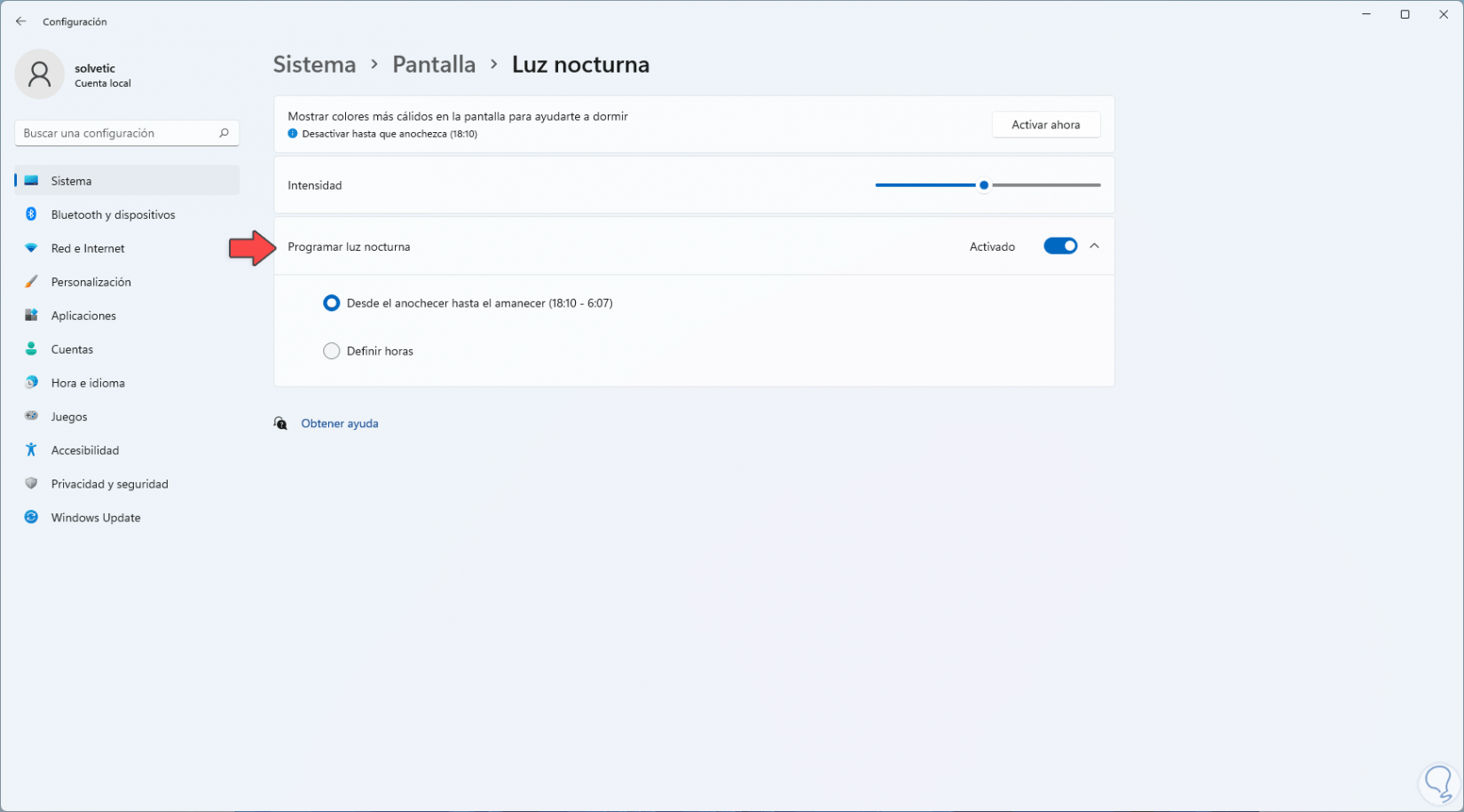 Con este método buscamos programar la luz nocturna en Windows 11 o bien realizar los ajustes necesarios.