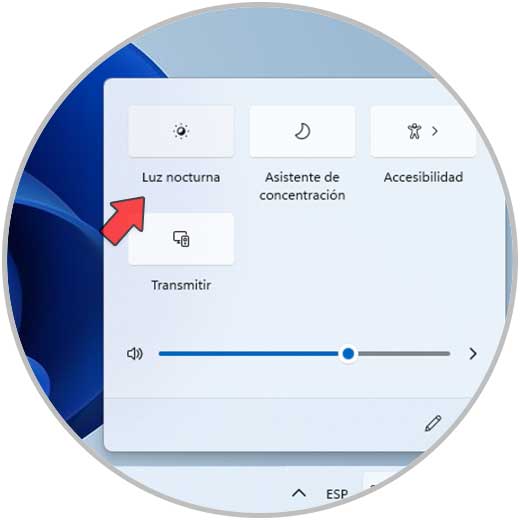 2. Activar o Desactivar Luz Nocturna Windows 11 desde Acceso rápido
