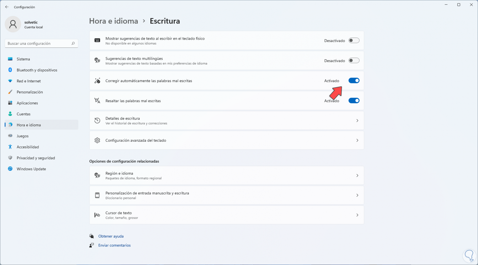 Cómo activar o desactivar el corrector de ortografía en Windows 11