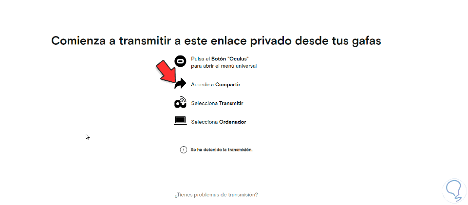 Ahora vamos a las Oculus y pulsamos en el icono de "Compartir" y después en "Transmitir"