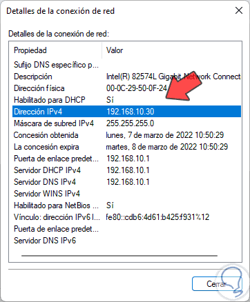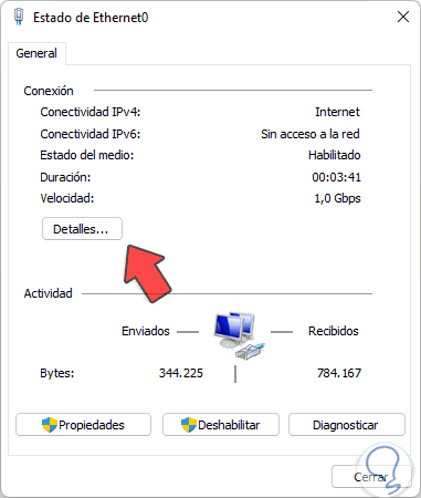 Veremos lo siguiente: Damos clic en "Detalles" para ver la dirección IP:
