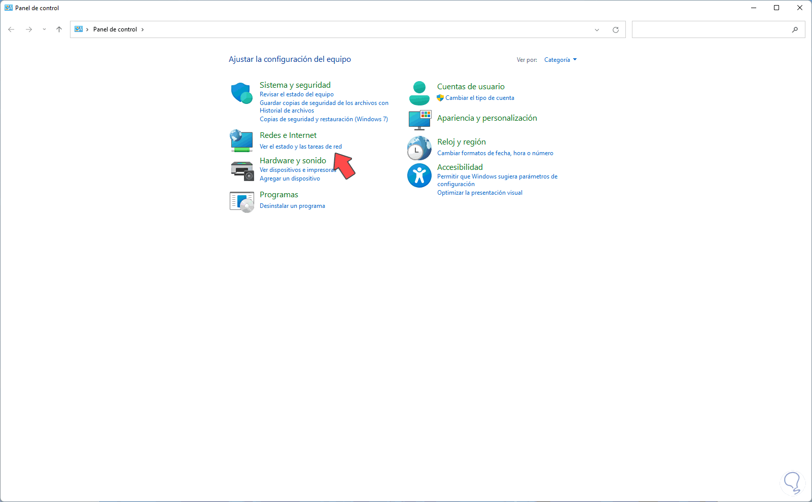 El panel de control de Windows 11 es otra de las opciones útiles para conocer la dirección IP que estamos usando, abrimos el Panel de control desde Inicio: