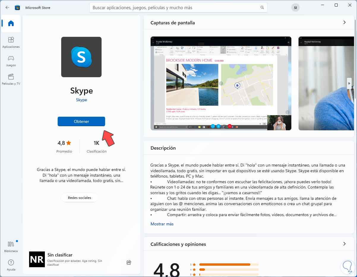 Damos clic en Obtener para instalar la aplicación en Windows 11: