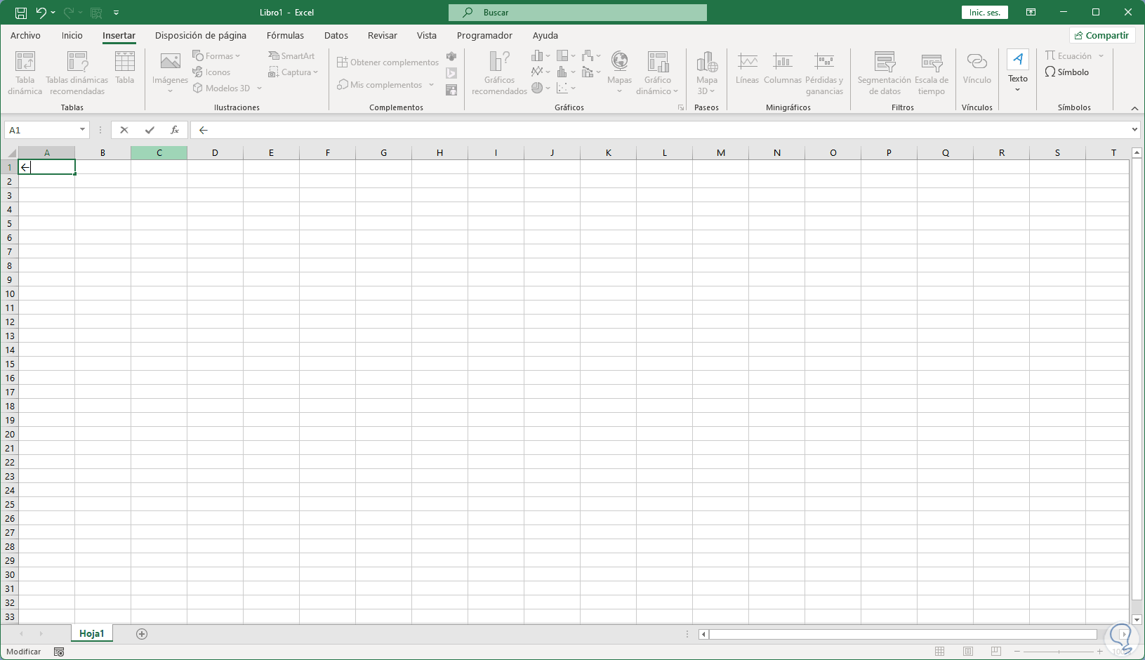 Abrimos Excel y vamos al menú "Insertar - Símbolo":