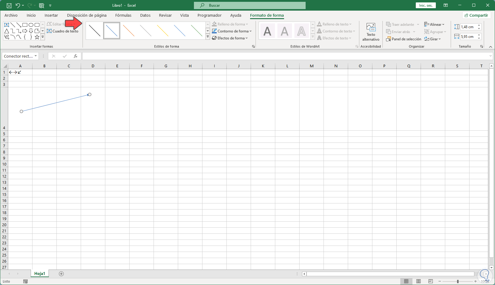 Añadimos la flecha en Excel: