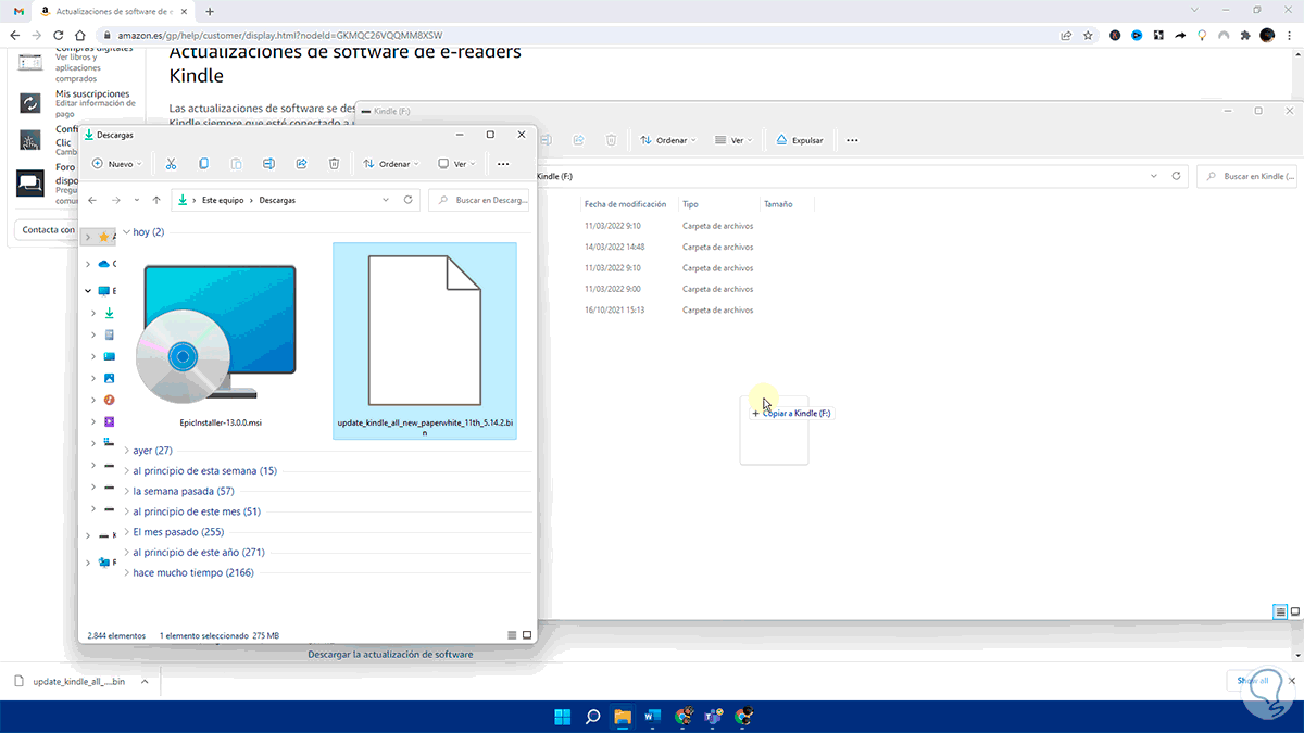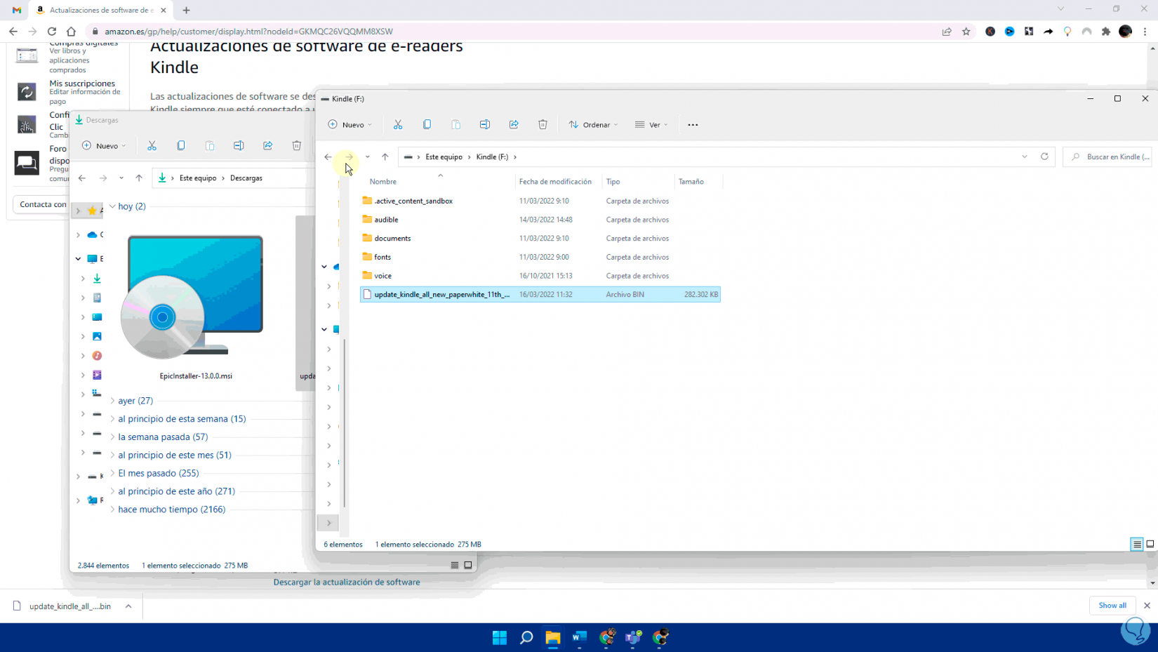 Verás que el PC detecta el Kindle como unidad de almacenamiento