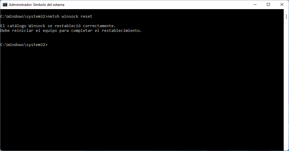 Restablece Winsock:
