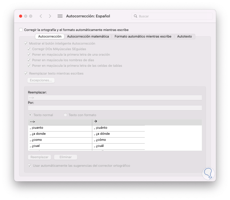 Se abrirá la siguiente ventana emergente. Activa la casilla "Corregir la ortografía y el formato automáticamente mientras escribe"