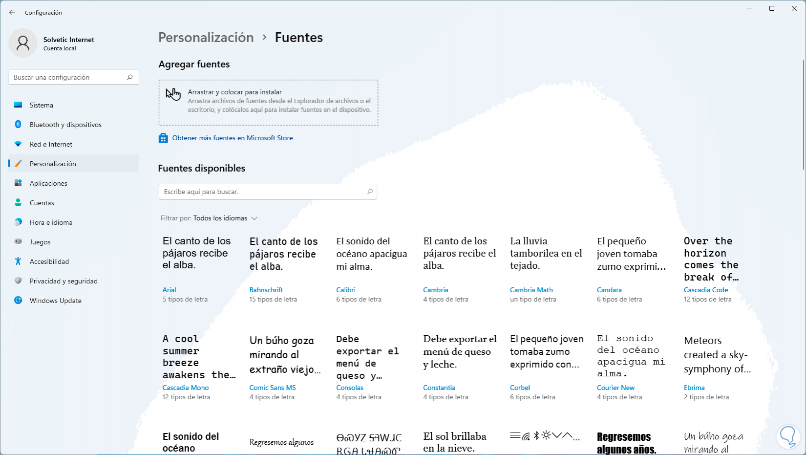 Es posible estar las fuentes En Windows 11 y Solvetic te enseñará cómo lograrlo usando dos métodos para ello.