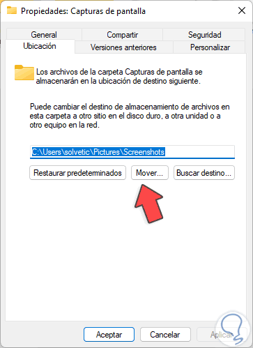 Damos clic en "Mover" y seleccionamos la nueva ubicación: