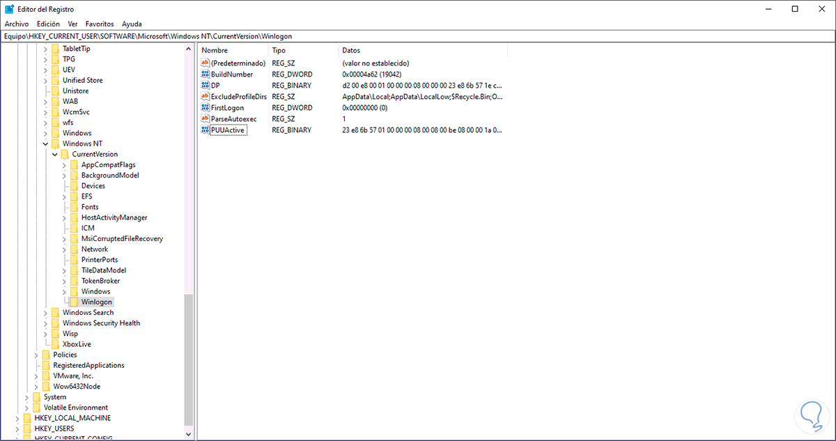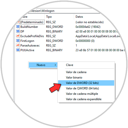 HKEY_CURRENT_USER - Software - Microsoft - Windows NT - CurrentVersion – WinlogonDamos clic derecho y seleccionamos "Nuevo - Valor de DWORD (32 bits)":
