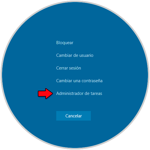 Pulsamos las teclas Ctrl + Alt +Supr y luego seleccionamos "Administrador de tareas":