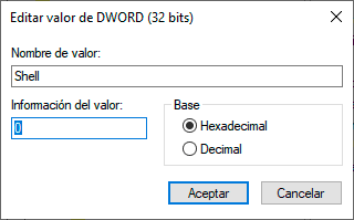 Damos doble clic sobre este valor y confirmamos que en "Información del valor" esté 0:
