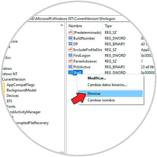 Después de esto, damos clic derecho sobre Shell y damos clic en "Eliminar":