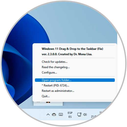 - Si no cumple todas las expectativas de arrastrar y soltar hacia aplicaciones o bibliotecas, podemos agregar la siguiente línea al archivo de configuración dando clic sobre el icono en la barra de tareas: