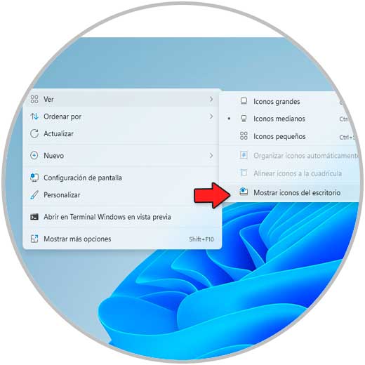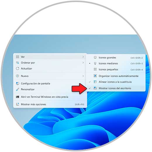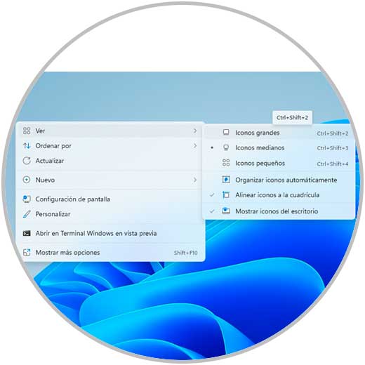 1. Organizar los iconos del Escritorio en Windows 11 ver iconos escritorio