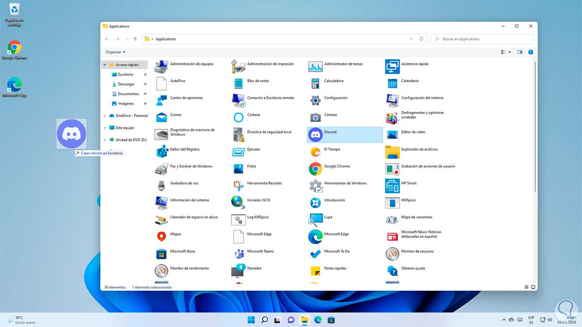 6. Organizar los iconos del Escritorio en Windows 11 crear iconos de aplicaciones