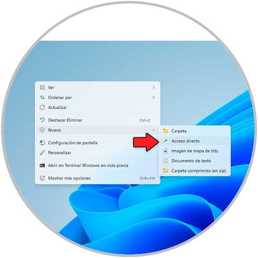 Para este caso damos clic derecho en el escritorio y seleccionamos "Nuevo - Acceso directo":