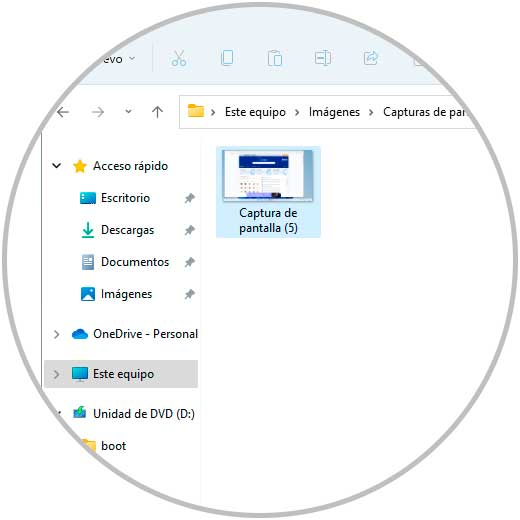 Después de esto, abrimos el Explorador de archivos y en "Imágenes - Capturas de pantalla" encuentras la captura realizada: