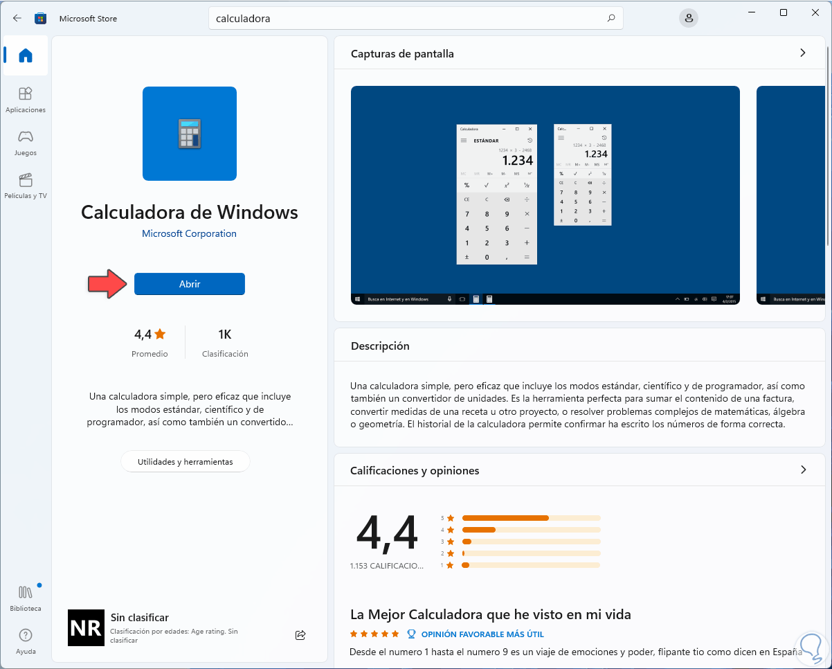 Abre la Tienda de Windows y busca la calculadora después de esto: