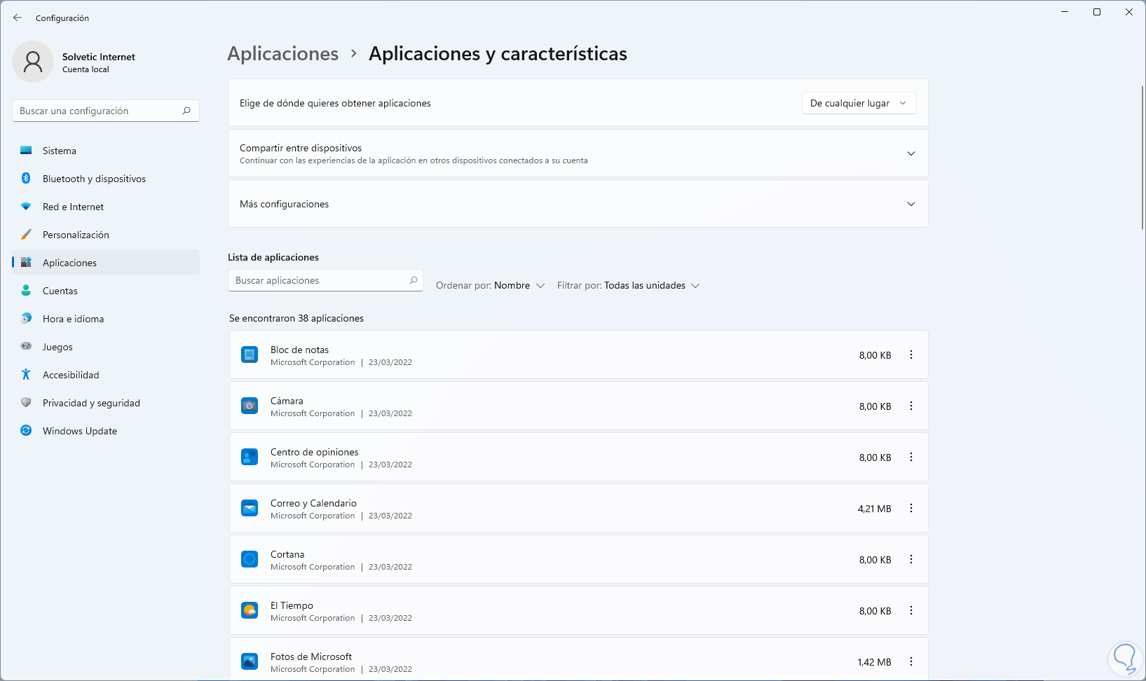 Vamos a “Aplicaciones - Aplicaciones y características”: