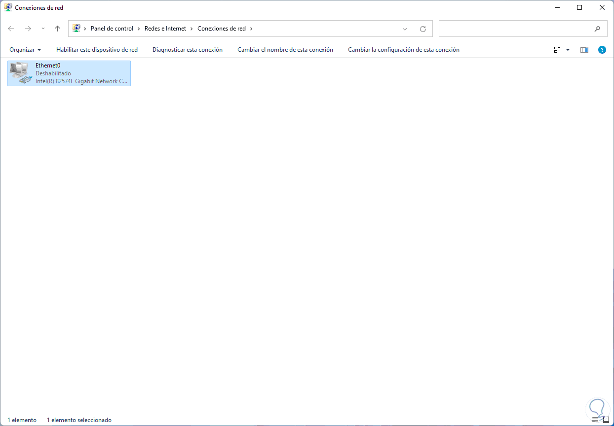 Podemos ver que la tarjeta de red se ha deshabilitado. El acceso a la red se desactivará.