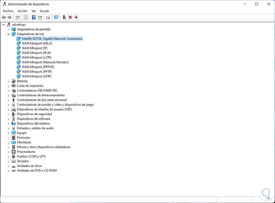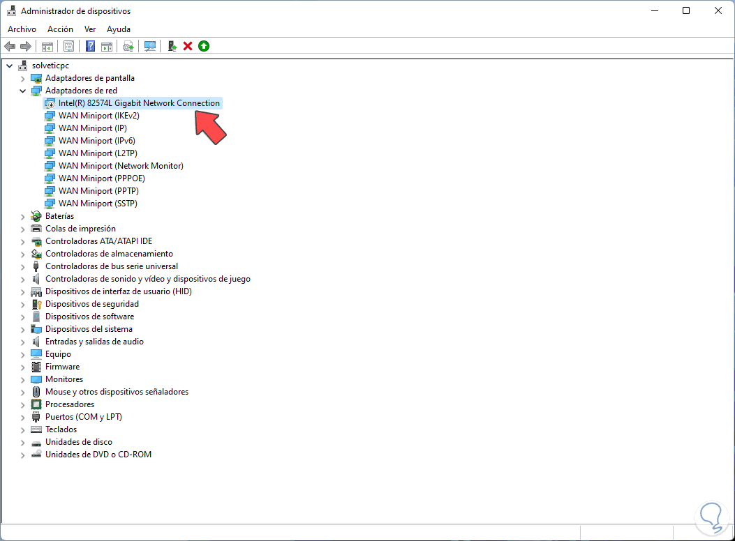 Desde el Administrador de dispositivos es posible gestionar todo lo relacionado con la tarjeta de red.