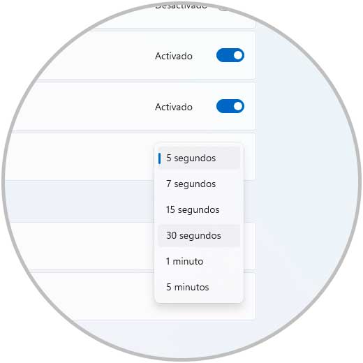 Pulsamos en el campo desplegable de la opción “Descartar notificaciones después de este periodo de tiempo” para seleccionar el tiempo deseado: