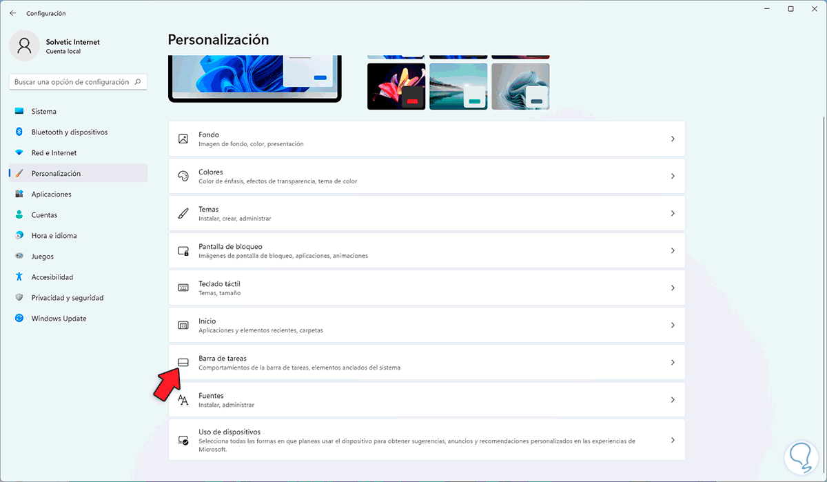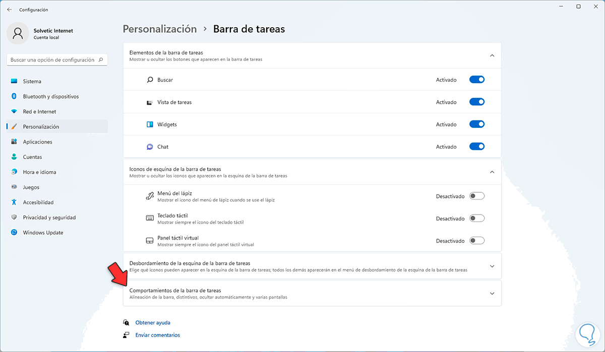 Veremos lo siguiente. Damos clic en “Comportamiento de la barra de tareas” para ver lo siguiente: