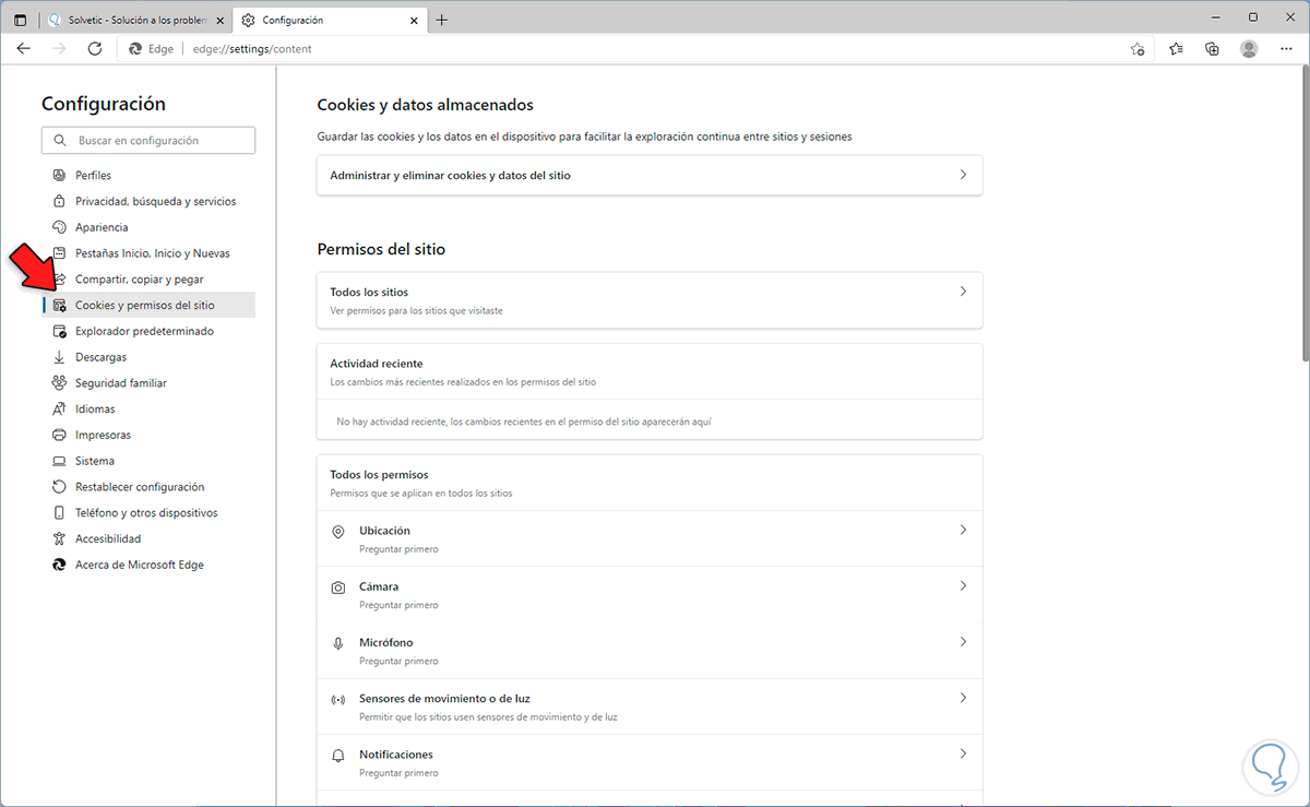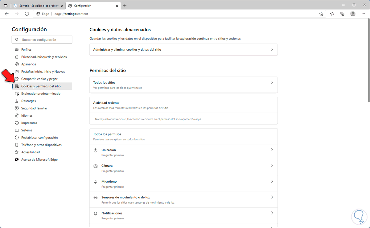 Ahora iremos a “Cookies y otros datos de sitios”: