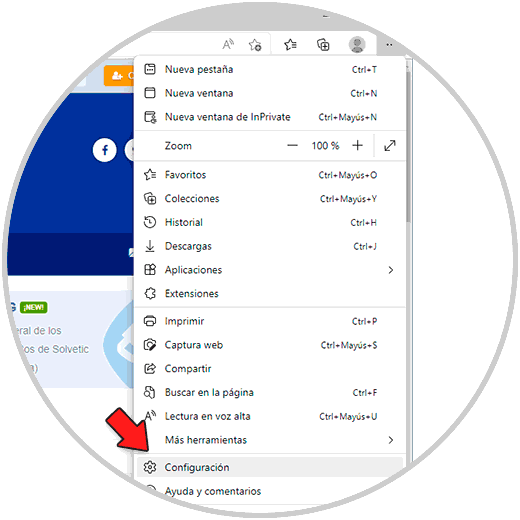 Para este caso abrimos Edge y vamos a “Configuración y más – Configuración”: