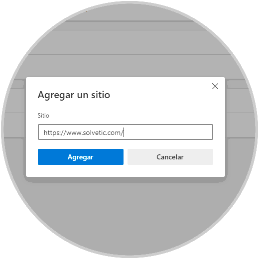 Damos clic en “Agregar” en “Permitir” ingresamos la URL deseada: