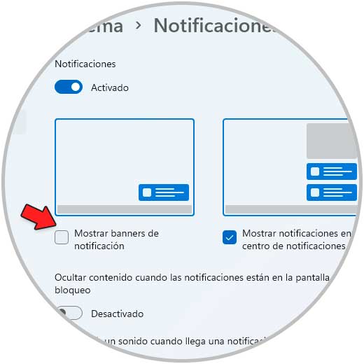Desactivamos el interruptor “Mostrar banners de notificación”: