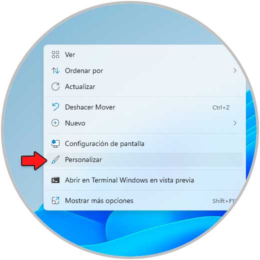 Para esto, damos clic derecho en el escritorio y seleccionamos "Personalizar":