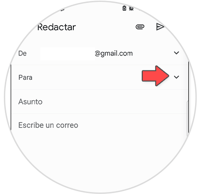 En la línea "Para" damos clic en "Cc" y "CCO" y estas se añadirán a las secciones de destinatario:
