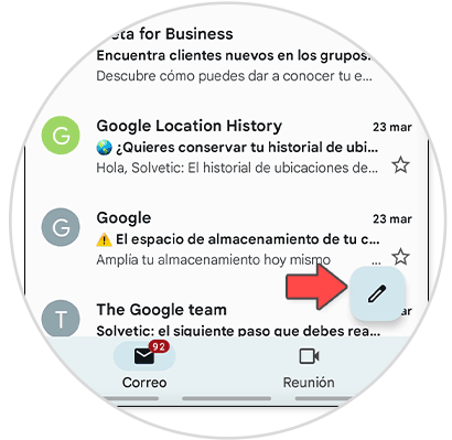 Abrimos Gmail en nuestro teléfono y pulsaremos en “Redactar”.