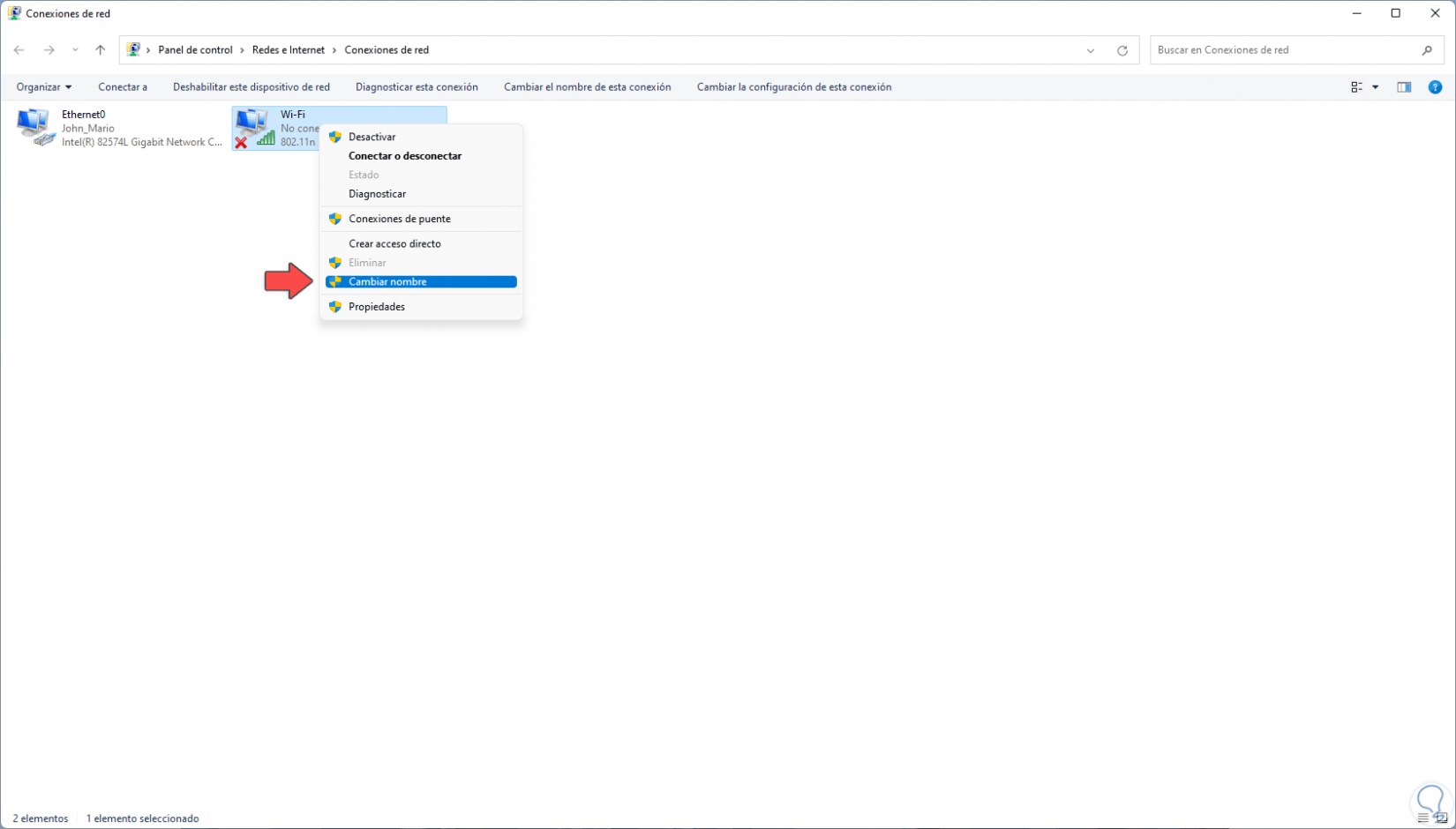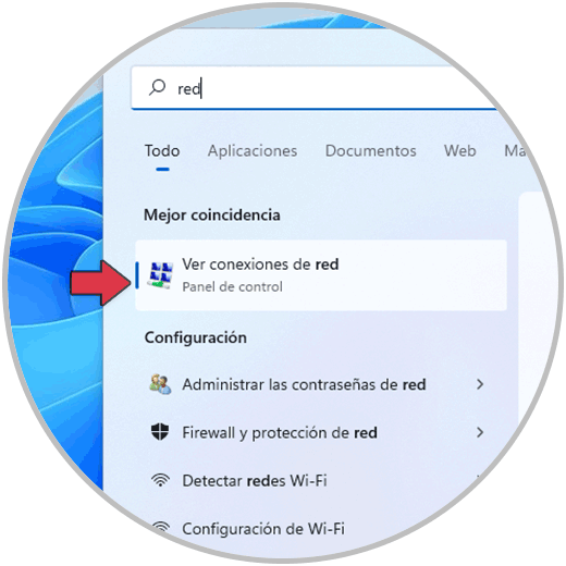 En el buscador de Inicio ingresamos "red". Damos clic en "Ver conexiones de red":