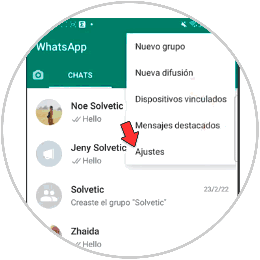 Lo primero que tienes que hacer es entrar en tu cuenta de WhatsApp y pulsar sobre los "Ajustes"