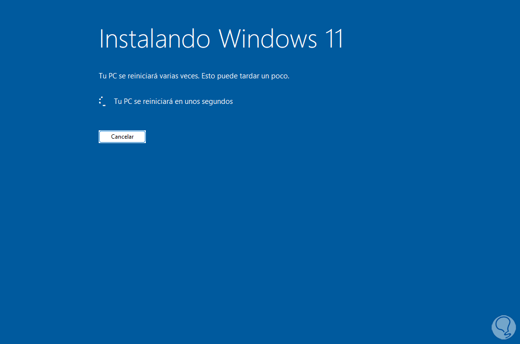 Se reiniciará Windows para completar el proceso: