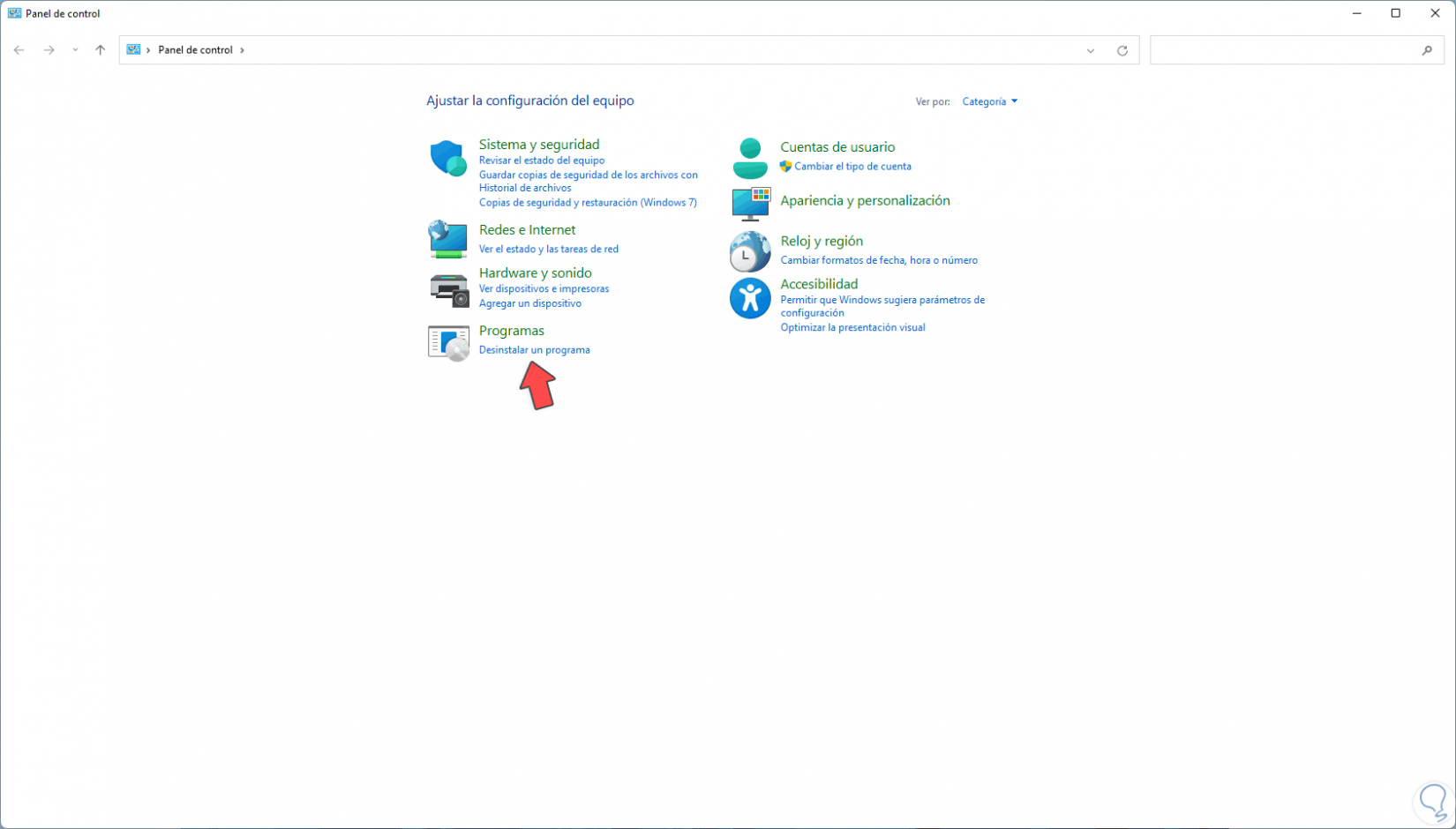 Se abrirá lo siguiente. Damos clic en "Desinstalar un programa"
