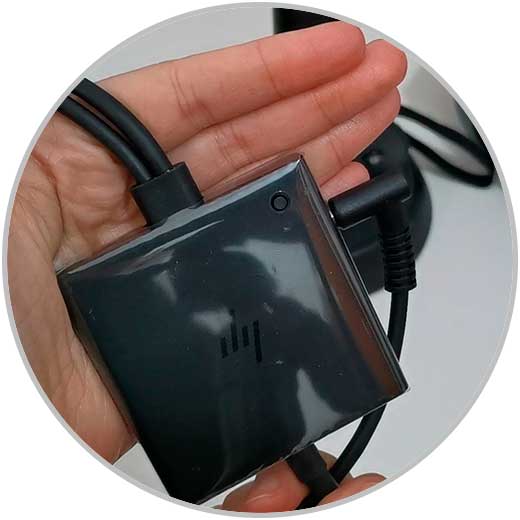 Para encender las gafas vamos a coger el adaptador que viene en el cable donde se conecta el conector de corriente.