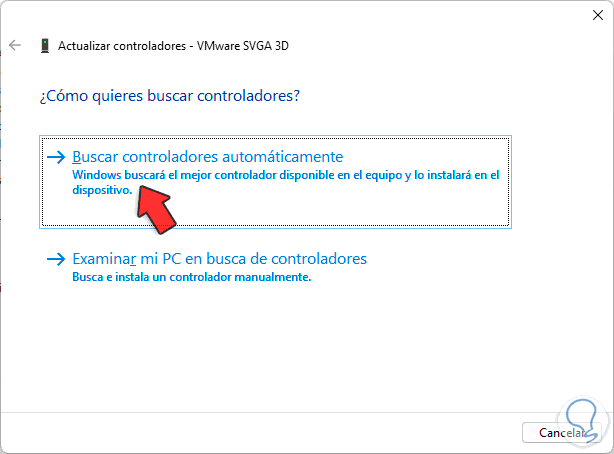 Damos clic en "Buscar controladores automáticamente" Y esperamos que finalice el proceso: