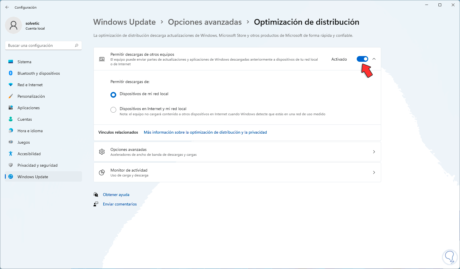 5. Cómo Solucionar Bajones de FPS Windows 11 configurando la Optimización de distribución