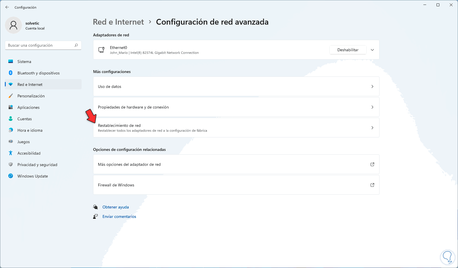 Si ninguna de las opciones realizadas ayuda con los bajones de FPS, podemos restablecer el adaptador de red a su configuración original.