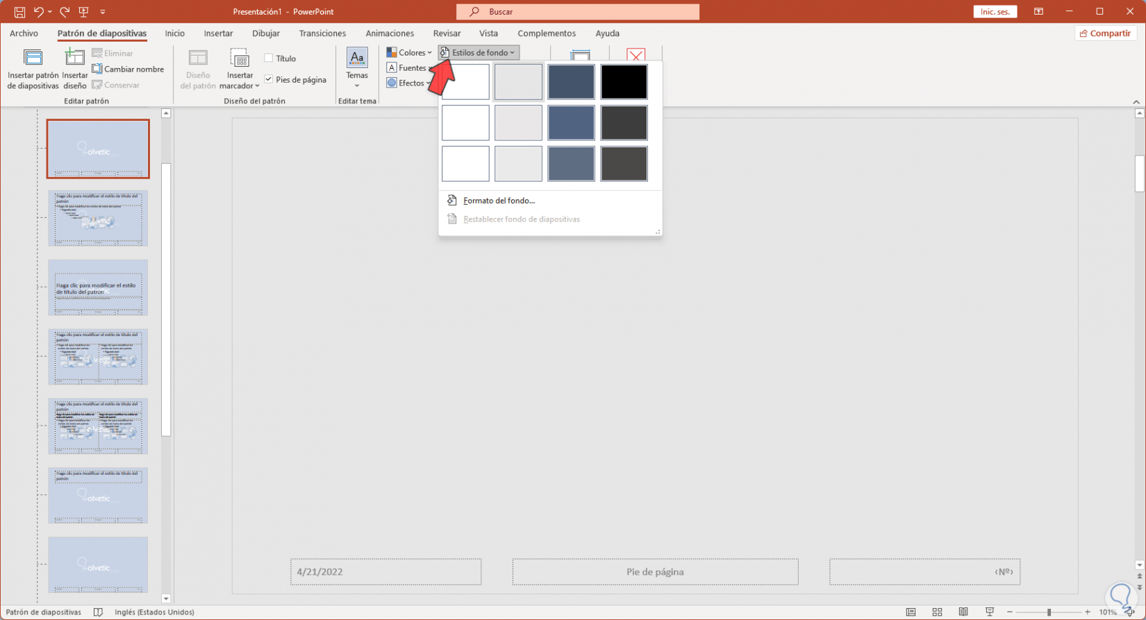 En la siguiente ventana que se abre desde "Estilos de fondo" seleccionamos el color deseado: