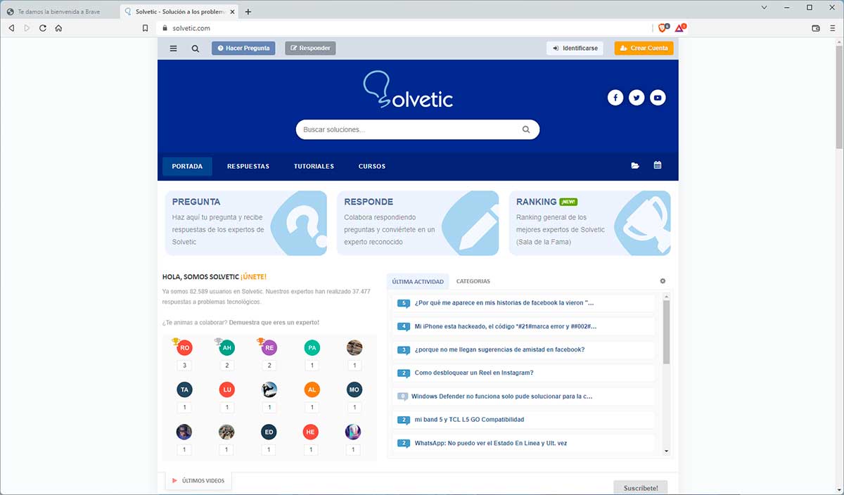 Para lograr esto, abrimos Brave para ver su página por defecto: