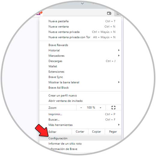 Luego pulsamos sobre el menú y seleccionamos "Configuración":