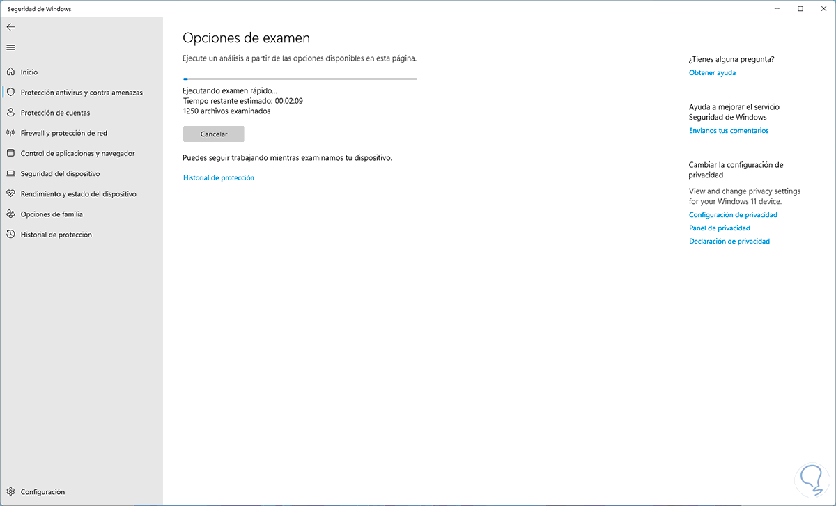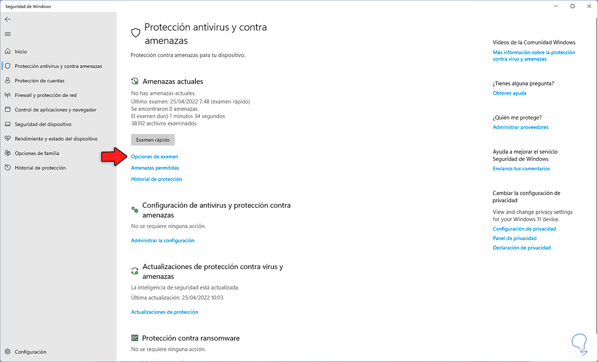 Vamos a "Protección antivirus y contra amenazas" donde veremos lo siguiente: